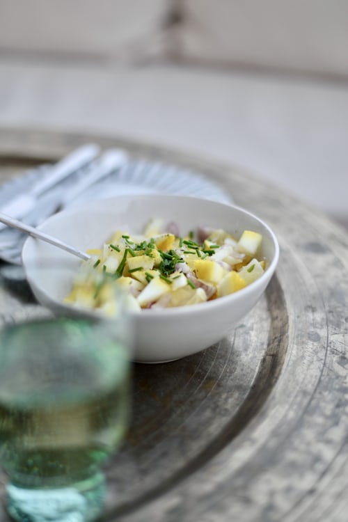 감자샐러드에 산미를 가미하면 깔끔하면서도 가볍게 즐길 수 있어요.