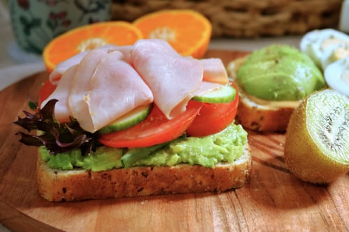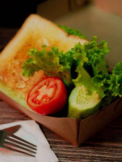 • 단단한 통밀빵이나 크루아상 반으로 자르고 내부에 버터를 얇게 바른 뒤 샐러드를 넣고 겉면은 약불에 살짝 굽기