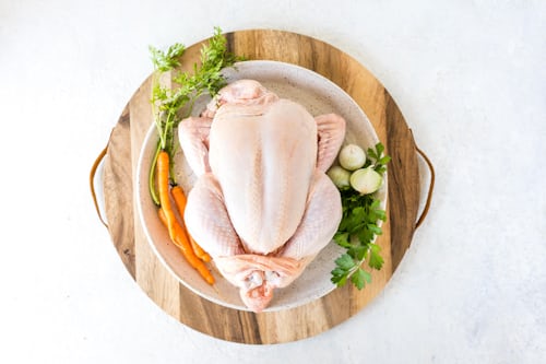 - A: 닭을 흐르는 물에 깨끗이 씻고, 끓는 물에 데쳐 불순물을 제거한 후 사용합니다.