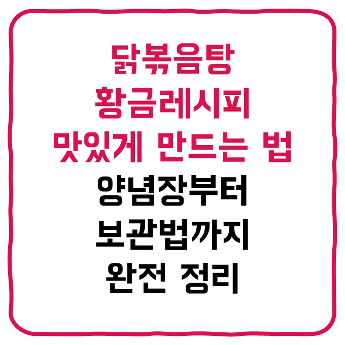 닭볶음탕 황금레시피 총정리! 백종원·류수영 레시피 비교부터 양념장 비법, 묵은지 활용법, 밀키트 추천, 보관법과 자주 묻는 질문까지 완벽 정리.