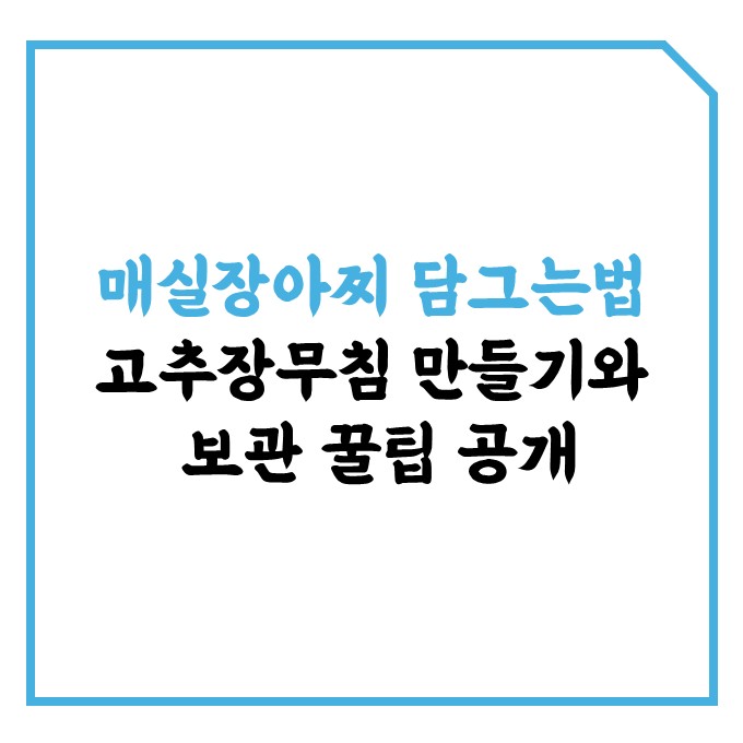 새콤달콤한 매실이 제철을 맞이하면 가장 먼저 생각나는 것이 바로 매실장아찌입니다. 담가두면 밥반찬은 물론 고기요리에 곁들이기 딱 좋고, 고추장 양념에 무쳐 먹는 별미로도 사랑받죠. 오늘은 매실장아찌 담그는법부터 고추장무침 레시피, 보관법, 숙성기간, 그리고 매실의 효능까지 한눈에 정리해드릴게요.